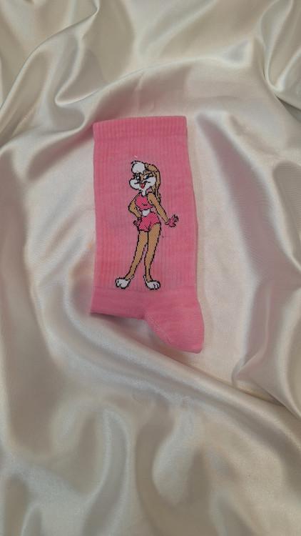 جوراب طرح دار ساق بلند صورتی لولا بانی