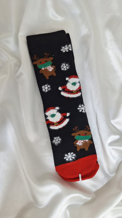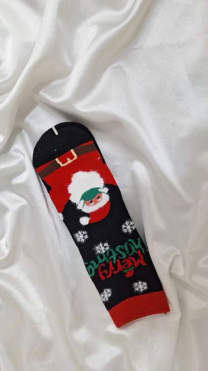 این پک پنجتایی جورابهای کریسمسی بابانوئل، با طراحیهای متنوع و جذاب، یک انتخاب فوقالعاده برای روزهای سرد زمستانی است. شامل طرحهای سبز و قرمز با سر بابانوئل خندان، مدل سبز با چند چهره بابانوئل، طرح مشکی با دو بابانوئل و دو گوزن، و مدل مشکیقرمز با سر بابانوئل.