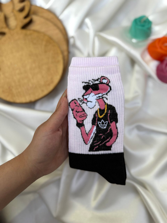 جوراب طرح دار ساق بلند پلنگ صورتی خیابانی