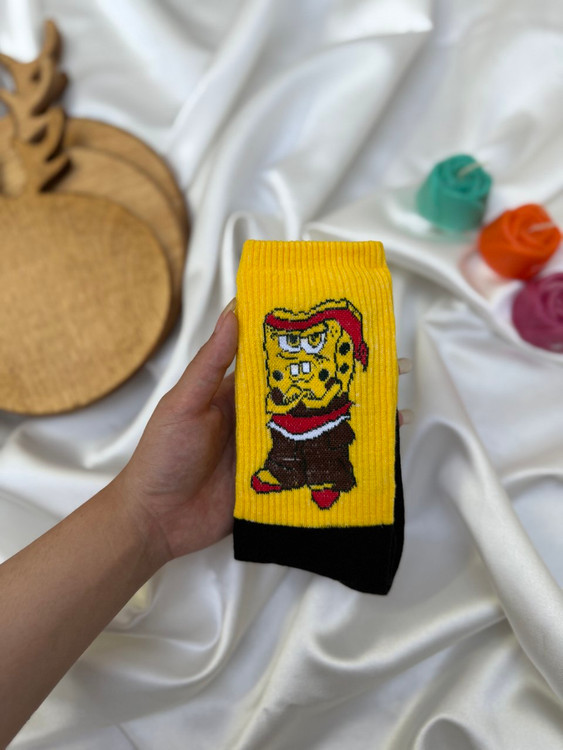 جوراب طرح دار ساق بلند باب اسفنجی نینجا
