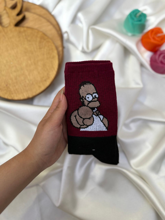 جوراب طرح دار ساق بلند زرشکی سیمپسون
