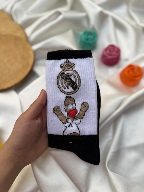 جوراب طرح دار ساق بلند سفید سیمپسون